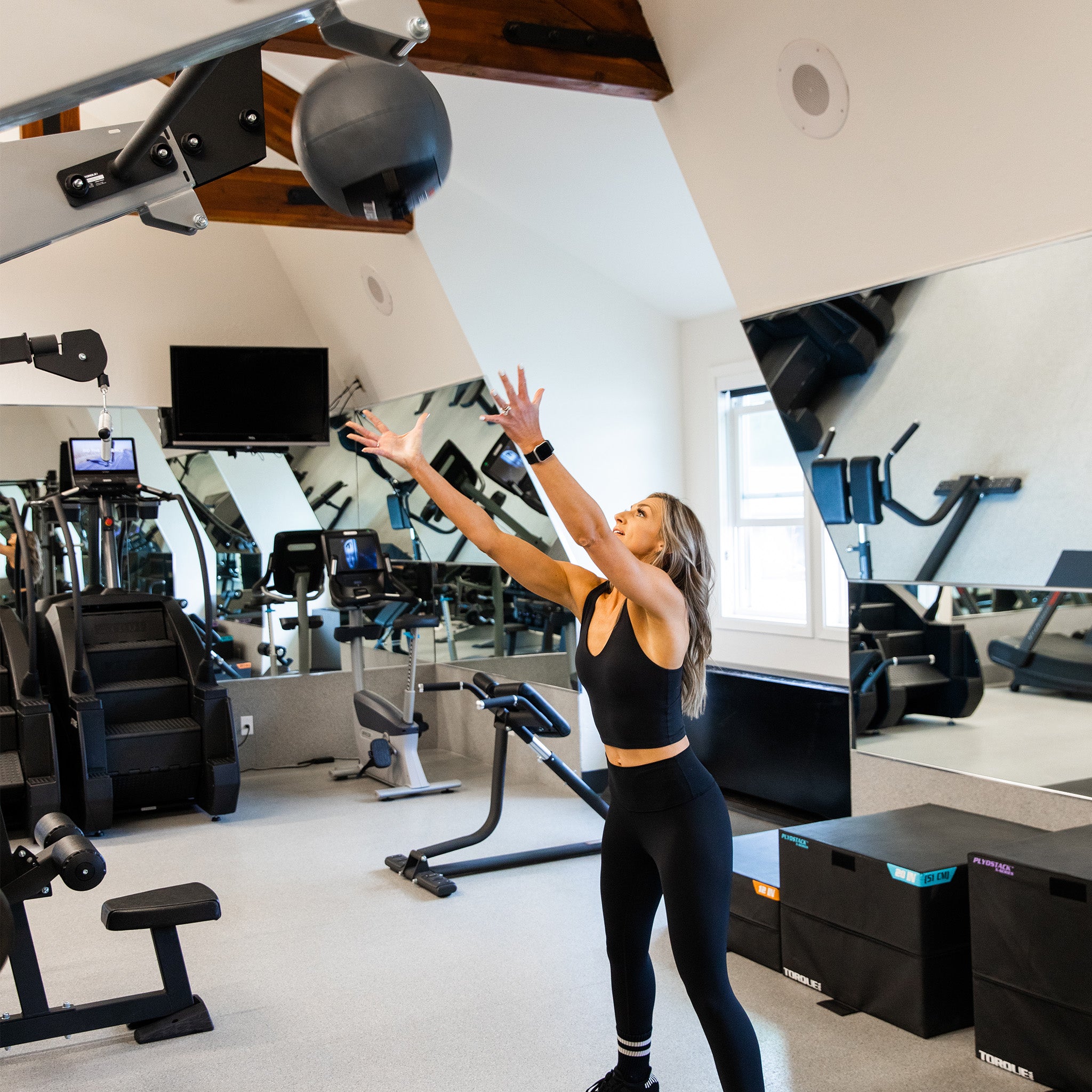 The Bridge Wall Ball Target attachment mounts to the Monkey Bar Cross attachment on any X-CREATE or X-RACK bridge unit.